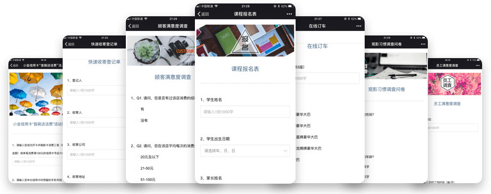 姓名、手机号、邮箱、自定义、联系人、年月日、省市区等
