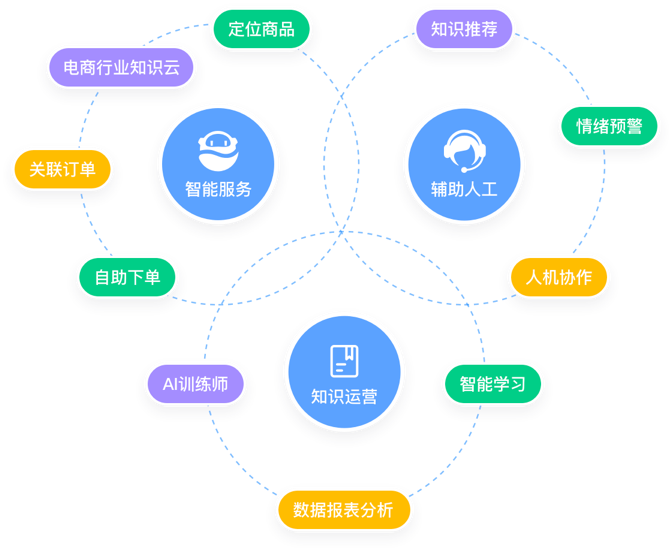 华睿云通运用网易人工智能基础能力,结合电商行业服务知识云, 打造人机协同的一体化智能服务方案。在智能服务、辅助人工以及 运营维护等环节,均打磨出对应的智能化能力,以提高企业的服务效率, 应对大促高峰咨询流量。华睿云通拥有专业AI训练师团队和培训体系,持续为企业赋能。
