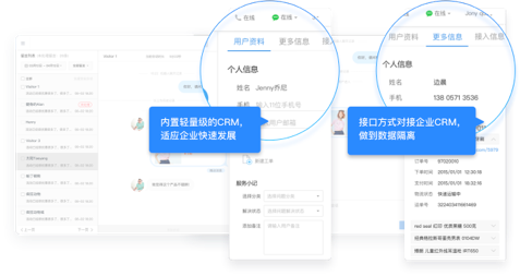 内置轻量级的CRM对接,接口方式深度对接。根据客户信息、咨询入口, 智能分配客服,提升30%人效,提升20%满意度,让服务更懂客户。