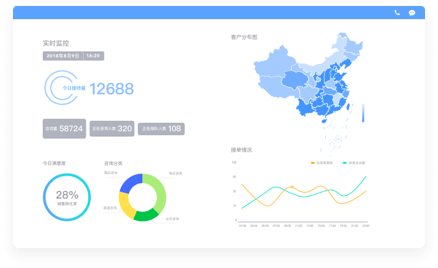 实时监控,数据报表细致全面,服务过程100%掌握,助理现场调配, 会话指标、客服表现一目了然。